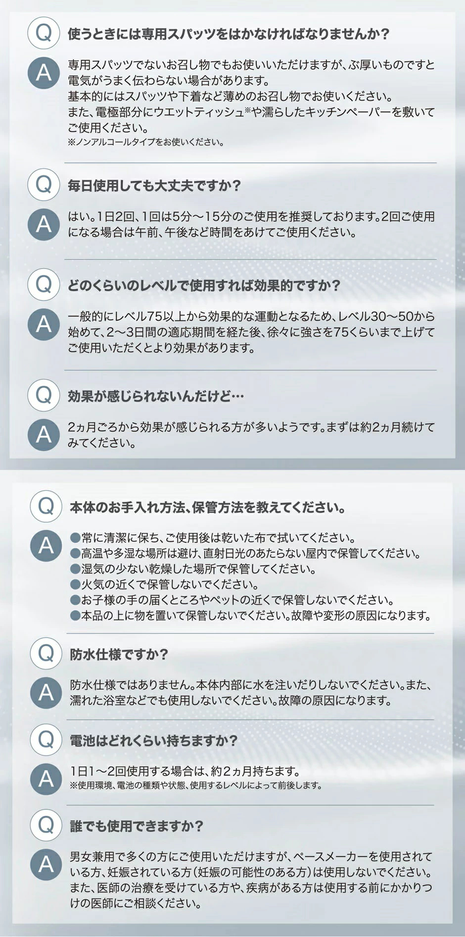 低周波の電気刺激で骨盤底筋を収縮・弛緩し、骨盤底筋を鍛えます。