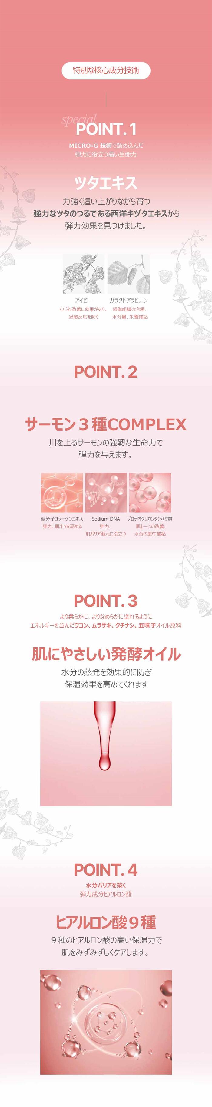 サーモン3X Complex※1とチェジュ島産発酵オイル※2、さらに9種のヒアルロン酸※3を配合したエイジングケア※4クリーム。