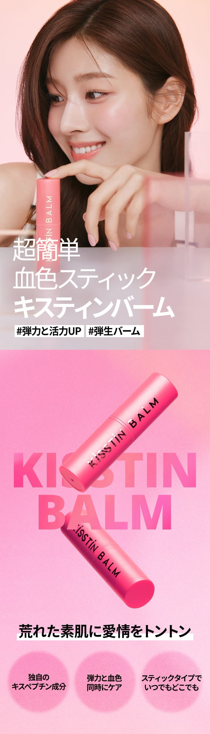 サーモン3X Complex※1とチェジュ島産発酵オイル※2配合した、ピンク色のキスティンバーム。