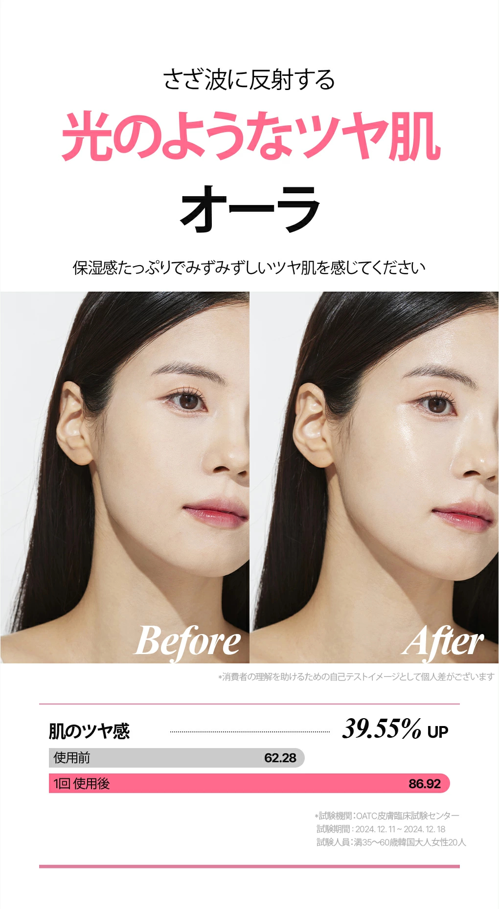 ※1 水、BG、1,2-ヘキサンジオール、ヒアルロン酸、エチルヘキシルグリセリン、加水分解ヒアルロン酸、ヒアルロン酸Na(すべて保湿成分)※2 ダマスクバラ花油(保湿成分) ※3 ヒアルロン酸、加水分解ヒアルロン酸、ヒアルロン酸Na(すべて保湿成分)※4 カニナバラ果実油(保湿成分)、トコフェロール(整肌成分)、ジパルミチン酸アスコルビル(整肌成分)※5 カンジダボンビコラ/(グルコース/ナタネ油脂肪酸メチル)発酵物、ブドウ種子油、ツボクサ葉エキス、ヒマワリ種子油(すべて整肌成分)