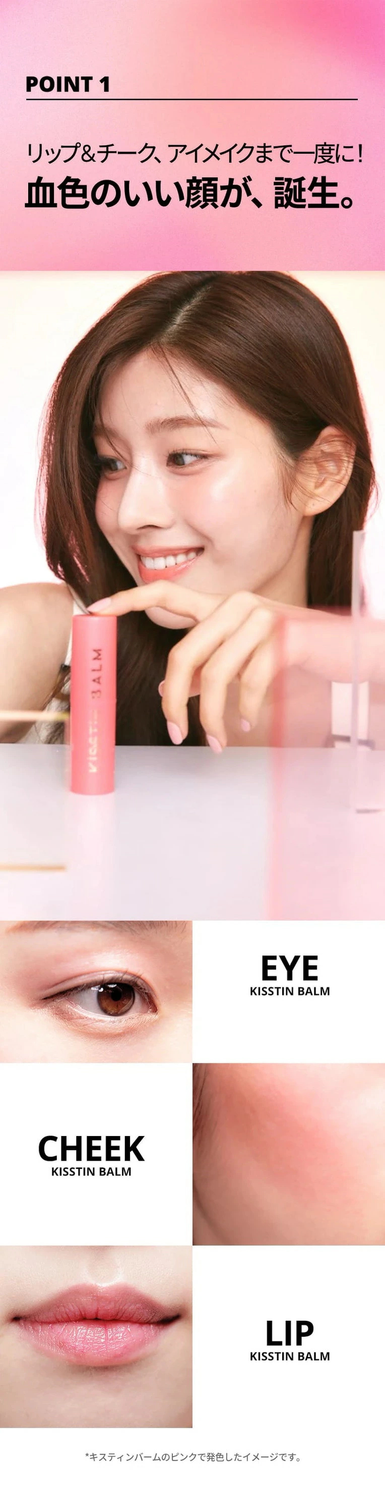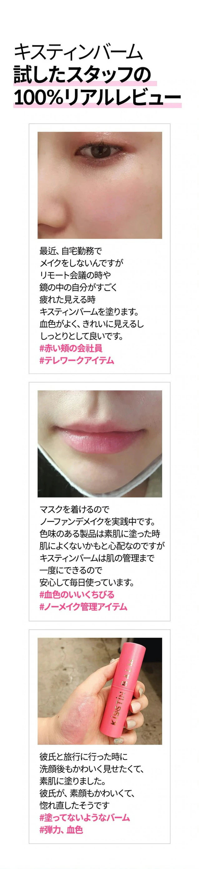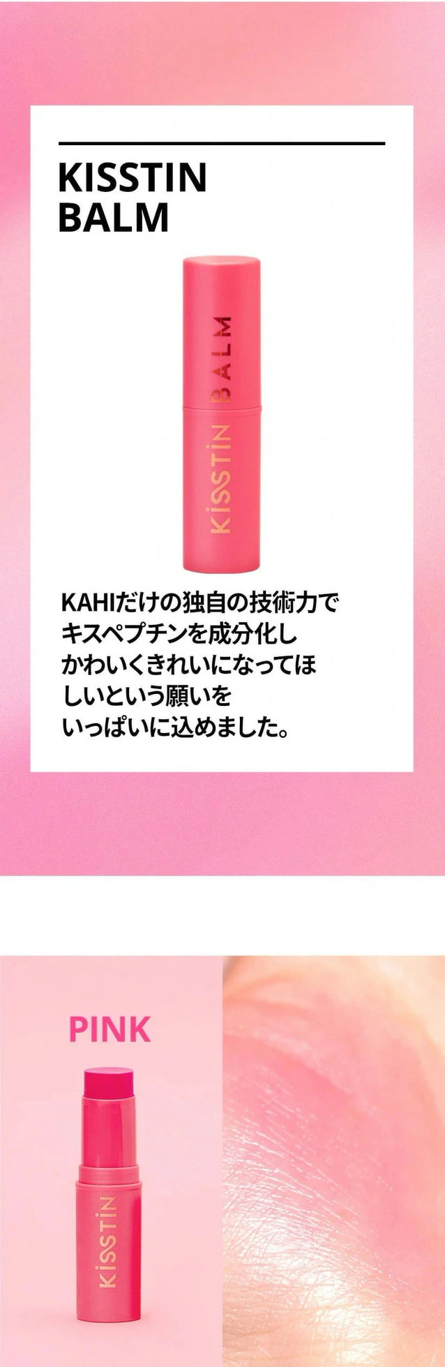 サーモン3X Complex※1とチェジュ島産発酵オイル※2配合した、ピンク色のキスティンバーム。